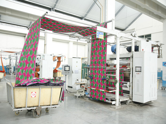華紡股份有限公司花布公司是公司印染主導(dǎo)產(chǎn)業(yè)板塊的重要組成部分,集印花面料的設(shè)計(jì)、印制、后整及銷售于一體,擁有進(jìn)口齊瑪20套色圓網(wǎng)印花機(jī),由高效配套的水洗機(jī)、退漿機(jī)、雙面印花機(jī)、絲光機(jī)、蒸化機(jī)、拉幅機(jī)等裝備組成13條功能先進(jìn)的印花生產(chǎn)線,輔以2條先進(jìn)的自動(dòng)調(diào)漿系統(tǒng);采用CAD滑行設(shè)計(jì)處理系統(tǒng)和先進(jìn)的蘭光制網(wǎng)機(jī)、噴蠟制網(wǎng)機(jī)等,可根據(jù)客戶及市場(chǎng)需求設(shè)計(jì)花型,并自主研發(fā)引領(lǐng)時(shí)尚潮流的新花型。年產(chǎn)能力12000萬(wàn)米,產(chǎn)品綜合出口率達(dá)80%以上,其中純棉真蠟印花布、純棉仿蠟印花布等100%外銷出口?;ú脊旧a(chǎn)工藝先進(jìn)、產(chǎn)品質(zhì)量穩(wěn)定,技術(shù)含量高、市場(chǎng)份額大,長(zhǎng)期暢銷非洲等數(shù)十個(gè)國(guó)家和地區(qū),其產(chǎn)品在非洲市場(chǎng)占有重要位置。