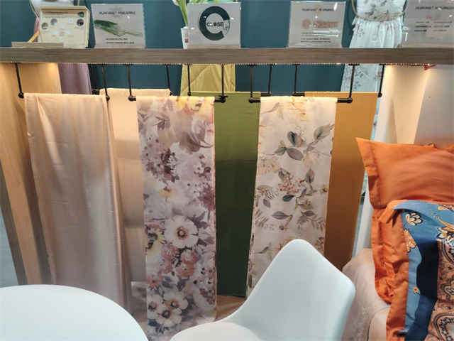 此屆法蘭克福家紡展,華紡股份家紡分公司打造了以“Green world”為主題,以綠色環(huán)??沙掷m(xù)的特色纖維產(chǎn)品為主材質(zhì),研發(fā)了醋酸系列/真橙系列/木棉系列/絲質(zhì)系列/超柔系列/麻系列六大系列產(chǎn)品,從材質(zhì)、功能、膚感、科技、花型、款式等多方面對(duì)產(chǎn)品進(jìn)行了融合升級(jí),吸引了來自法國(guó)、意大利、葡萄牙等諸多國(guó)家的客戶進(jìn)入展位進(jìn)行咨詢洽談!其中,迎合歐洲市場(chǎng)喜好的亞麻、漢麻提花、色織簡(jiǎn)約條紋產(chǎn)品也成功吸引了來自歐美的客戶。
